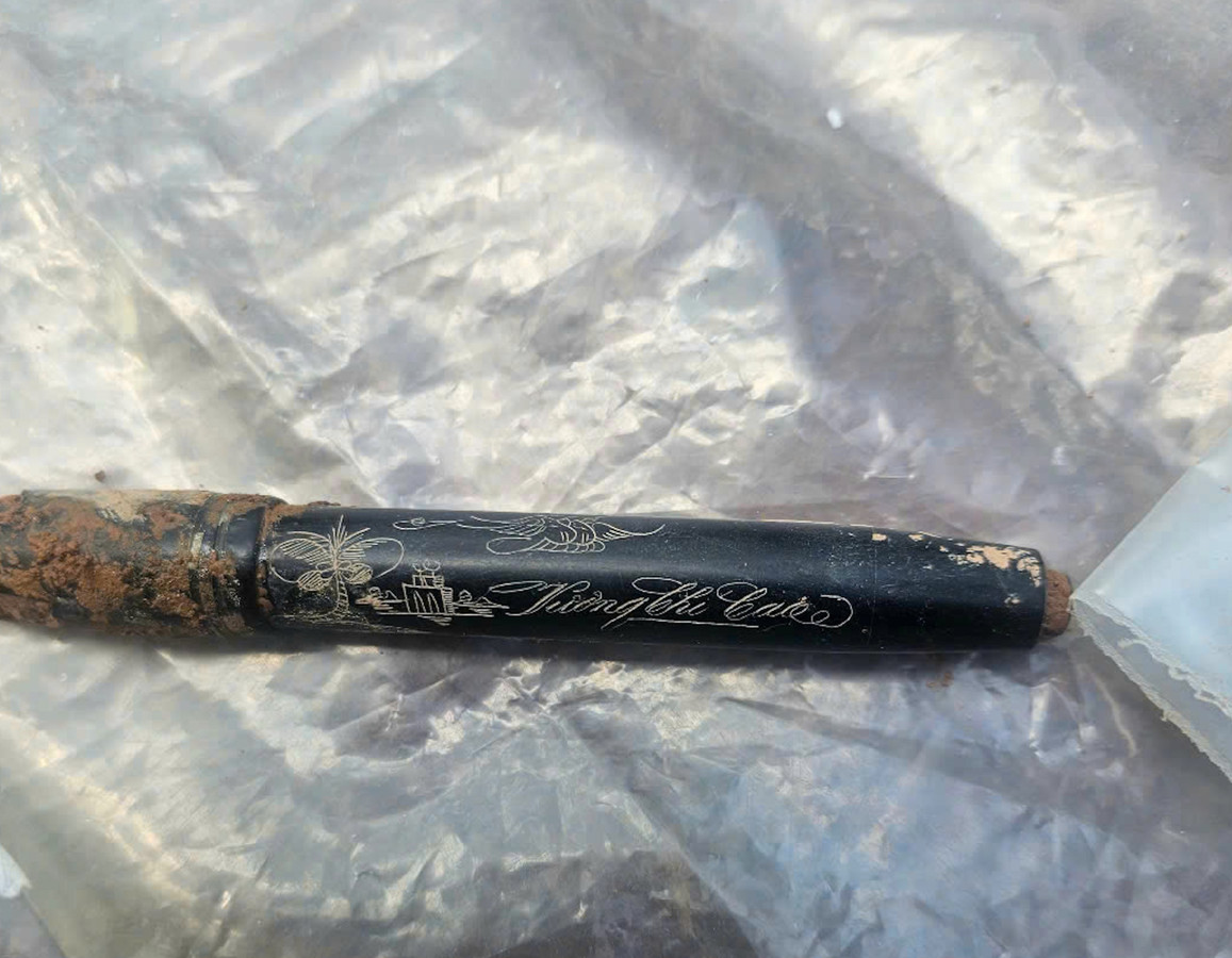 Quá trình quy tập, lực lượng bộ đội cũng phát hiện nhiều di vật, đáng chú ý là cây bút máy có khắc tên "Vương Chí Cao". (Ảnh: Xuân Diện)