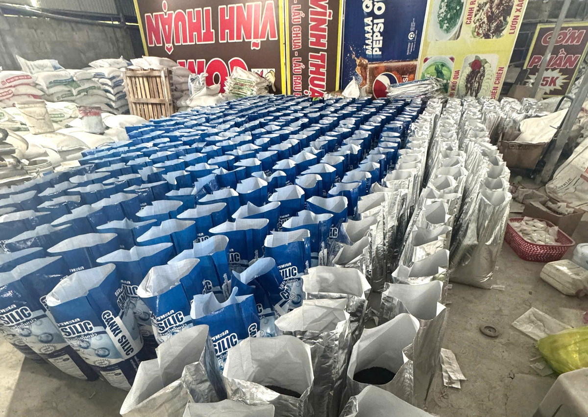 Tại thời điểm kiểm tra, cơ sở đang sử dụng máy trộn, máy khâu, cân đồng hồ để phối trộn nguyên liệu, san chia và đóng gói thành phẩm. Các sản phẩm đang trong quá trình đóng gói hoặc đã hoàn chỉnh, mang nhiều nhãn hiệu khác nhau. Đáng chú ý, bao bì in sẵn tên các công ty khác nhau được sử dụng trực tiếp để đóng gói tại chỗ.