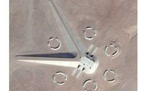 Một cấu trúc kỳ lạ trên một vùng sa mạc của Ai Cập được phát hiện qua hình ảnh vệ tinh của Google Earth. Giới theo thuyết âm mưu cho rằng đây là bằng chứng căn cứ bí mật của người ngoài hành tinh.