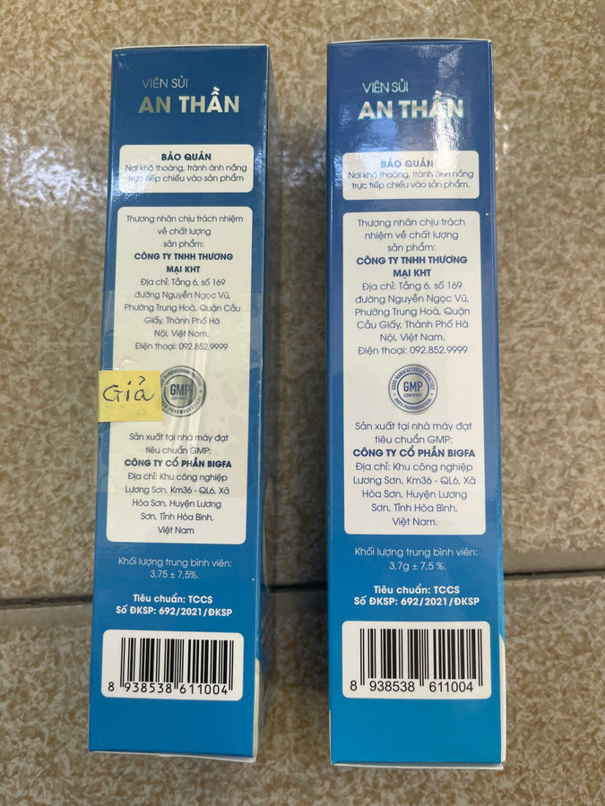 Thời điểm này, lực lượng chức năng phát hiện 385 hộp viên sủi an thần có dấu hiệu giả mạo về tên, địa chỉ của doanh nghiệp sản xuất, doanh nghiệp phân phối sản phẩm; giả mạo mã số đăng ký lưu hành sản phẩm của Công ty TNHH thương mại KHT.