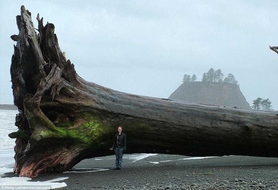 Trong số hàng trăm cây gỗ bị bật gốc vì bão vừa trôi dạt bờ biển La Push có một gốc tùng tuyết cổ thụ (loại thực vật to lớn phân bố ở Bắc Mỹ) dài 60 mét với đường kính thân rộng 3,9 mét.