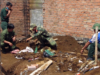 | Tháo gỡ, thu gom đạn và mìn dưới nền nhà |