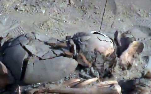 | Tay của những bộ xương dường như đã bị trói, bị bịt mắt, cổ bị cứa. Ảnh Dailymail |