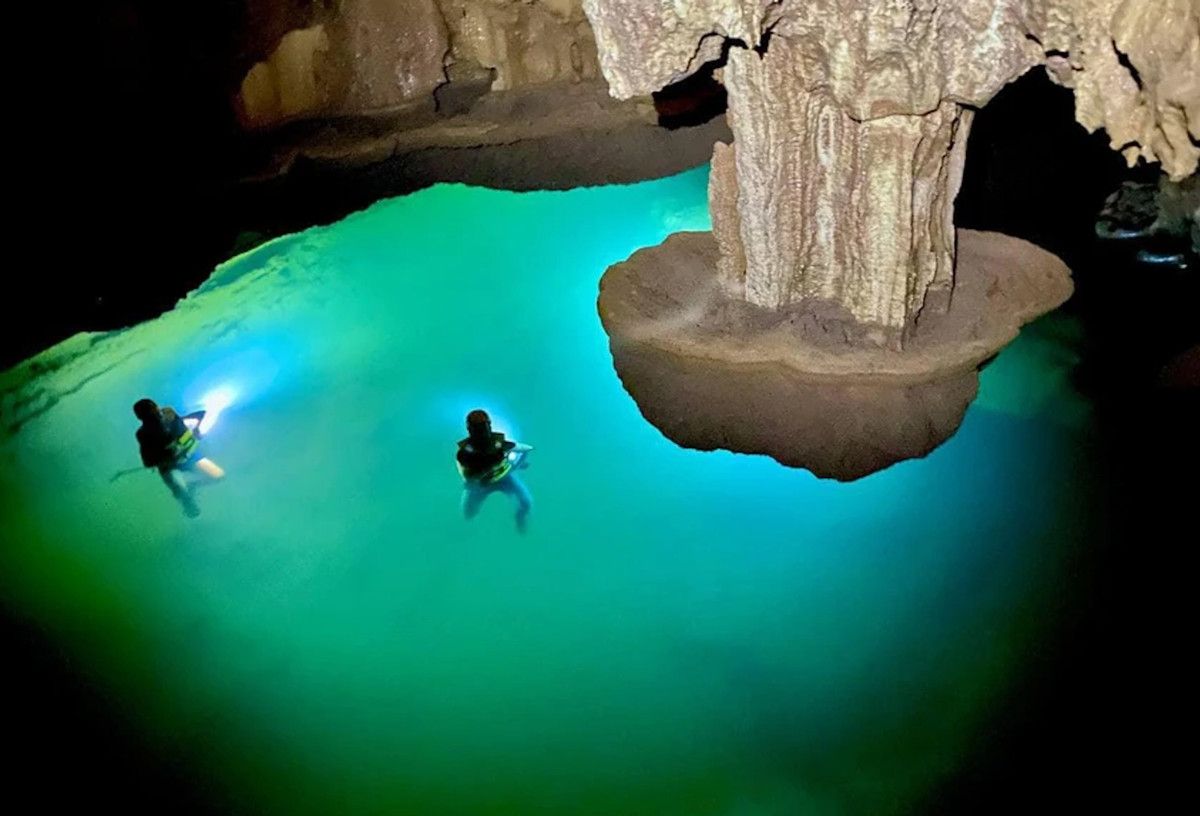 Hình ảnh hồ "lơ lửng" trong hang Thung vừa được phát hiện. (Ảnh: Junglee Boss)