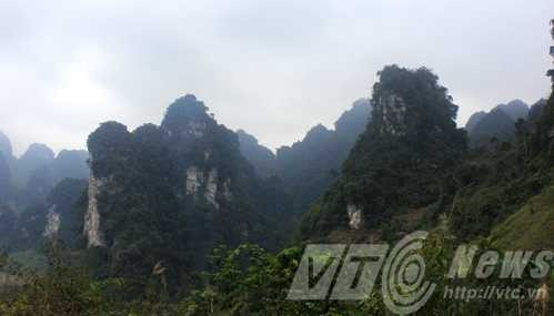 Ngay sau vách núi, rừng thẳm hiện ra mênh mang trước mắt. Những quả núi đá vôi xanh thẫm nhấp nhô lẫn trong mây mù đẹp như cổ tích. Nhiều khách lạ đến đây, ngắm những quả núi nhấp nhô, mà ví như Hạ Long trên cạn.