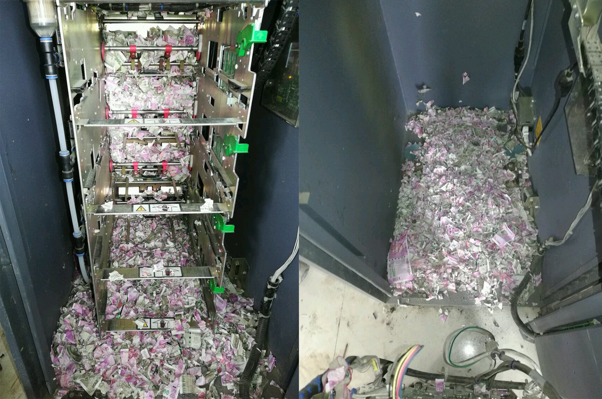 Một quan chức Ngân hàng Nhà nước Ấn Độ (SBI) cho biết những gì các kỹ thuật viên phát hiện đó là xác chuột và tiền vụn. Các bức ảnh do một phóng viên địa phương chụp và được trang Reuters đăng tải lại sau khi máy ATM được mở cho thấy, những mảnh giấy bạc màu xám và tím có mệnh giá 500 và 2000 rupee.