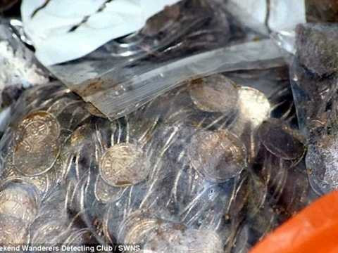 | Sau khi phát hiện số kho báu khổng lồ trên, các chuyên gia ở Bảo tàng Anh đã kiểm tra và xác định số tiền cổ bằng bạc trên có trị giá ước tính khoảng 1,6 tỉ USD. |