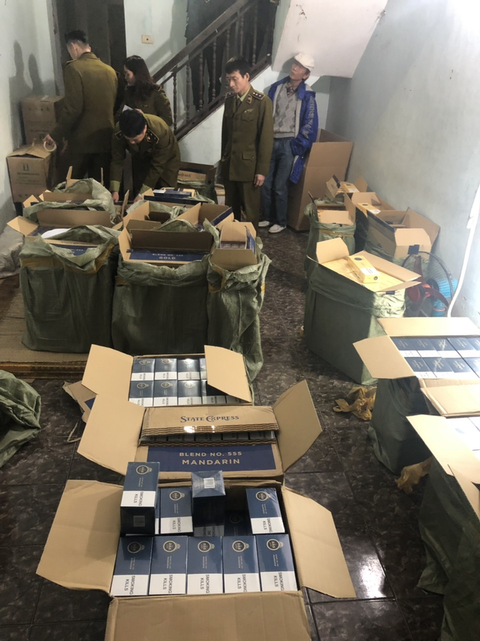 Qua quá trình khám xét, đoàn kiểm tra phát hiện trong căn nhà trên có khoảng 15.000 bao thuốc lá nhãn 555 do nước ngoài sản xuất, chưa xuất trình được hóa đơn chứng từ liên quan đến hàng hóa.