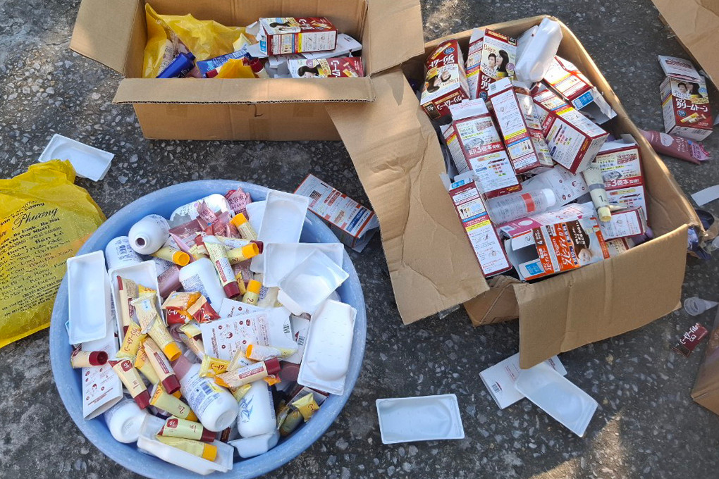 Tại thời điểm kiểm tra, lực lượng chức năng phát hiện số hàng hóa mỹ phẩm tại đây là mỹ phẩm nhập lậu gồm: 55 chai sữa dưỡng ẩm và chống nắng Hatomugi SPF31 (loại 250ml); 35 tuýp sữa rửa mặt Hatomugi (loại 130g tuýp màu xanh); 25 tuýp tuýp sữa rửa mặt Hatomugi (loại 130g tuýp màu trắng); 27 tuýp sữa rửa mặt Hatomugi (loại 170g tuýp màu trắng); 50 tuýp sữa rửa mặt Senka (loại 120g tuýp màu hồng) và 70 hộp thuốc nhuộm tóc Bigen (hộp gồm 2 tuýp 40g/tuýp).