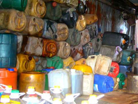Tại kho chứa này có hàng trăm can nhựa lớn nhỏ, trong đó có hàng chục can loại 20 lít đã đựng xăng và nhiều xô, máng, ống hút, vật dụng phục vụ việc sang chiết xăng lẻ.