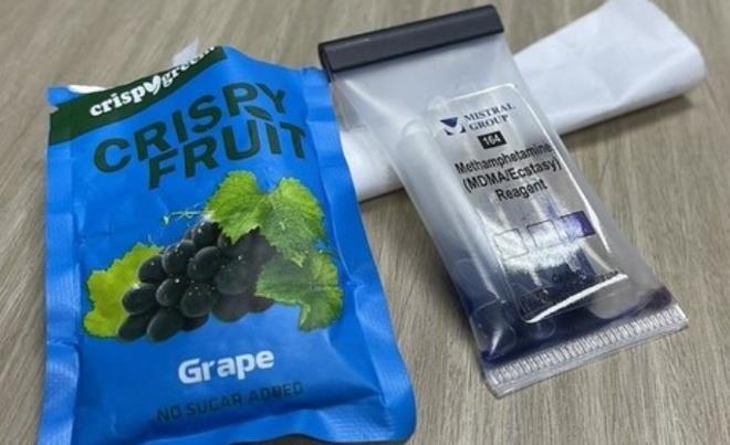 Trước đó, qua kiểm tra hàng hóa nhập khẩu, Cục Hải quan TP.HCM phát hiện, thu giữ 720 g ma túy loại mới gồm hợp chất ma túy tổng hợp dạng bột pha trộn giữa Methamphetamine, MDMA, Nimetazepam, đóng thành gói nước trái cây (Crispy Fruit - nước nho), trọng lượng 7 gram/gói.
