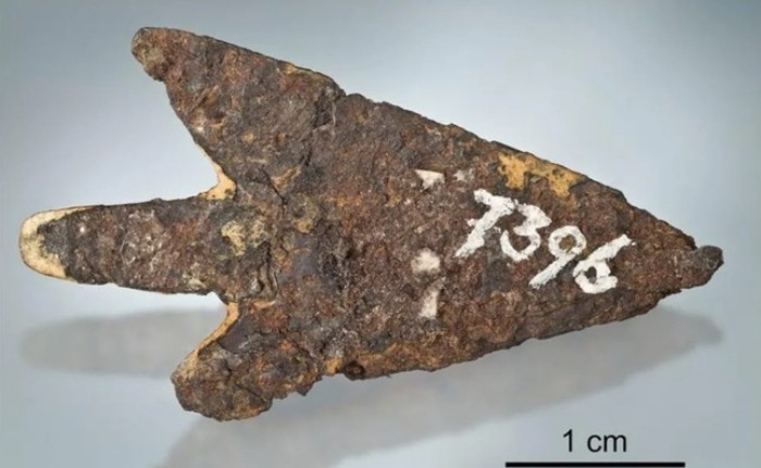 Đầu mũi tên thời đại đồ đồng làm bằng sắt thiên thạch vừa được các nhà khoa học khám phá. (Ảnh: Forbes)