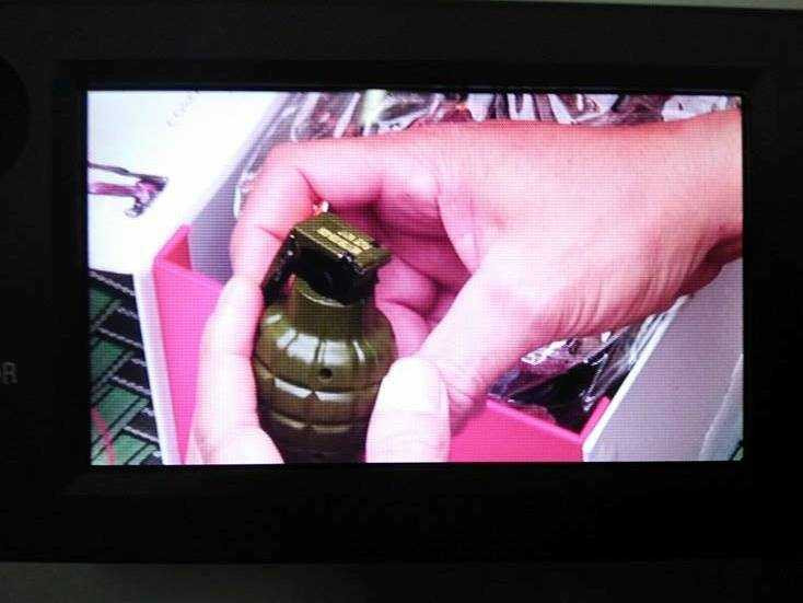 Quan sát của PV VTC News qua hình ảnh do cơ quan an ninh cung cấp thì vật lạ nghi là lựu đạn còn mới, có màu xanh lục và còn nguyên chốt.