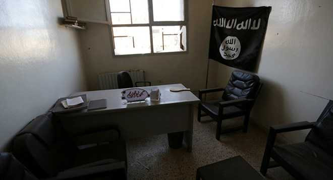 Ảnh chụp một gian phòng chỉ huy của IS gần thị trấn Turkmen Bareh, gần thành phố Aleppo (Syria).