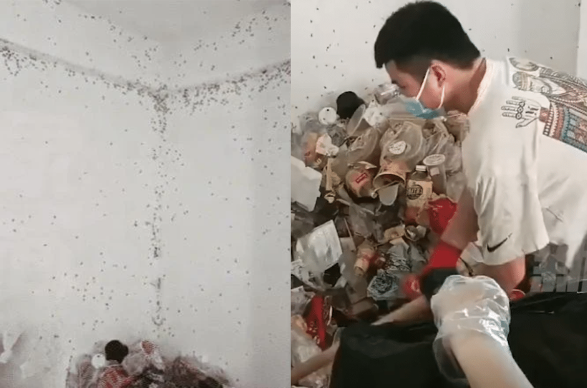 Sau khi mở cửa, chủ nhà chết lặng trước những gì đập vào mắt, căn phòng đầy rác. Điều không thể chấp nhận hơn nữa đối với chủ nhà là cả sàn và tường đều ngập trong gián, cảnh tượng chưa bao giờ nhìn thấy.