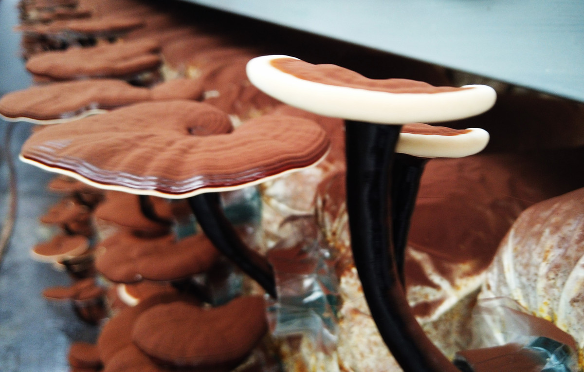 Nấm Quế Linh chi được nuôi trồng trong môi trường có độ ẩm cực cao.
