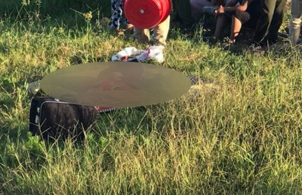 Nạn nhân nằm cạnh 1 chai nước lọc, 1 điện thoại nhãn hiệu OPPO, phía dưới có 1 bơm kim tiêm dính máu và 1 chiếc xe máy.