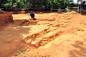 | Theo các chuyên gia, di tích phát lộ cho thấy đây là dấu tích nền móng của ngôi đền tháp Chăm có quy mô lớn |