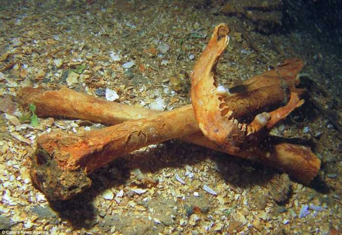 Xương người, trong đó có cả xương hàm nằm dưới đáy biển