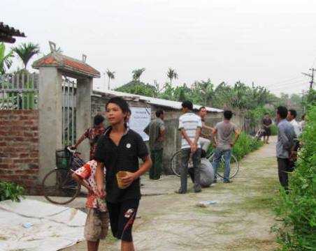 | Người dân trong khu vực tập trung trước nhà nạn nhân. |