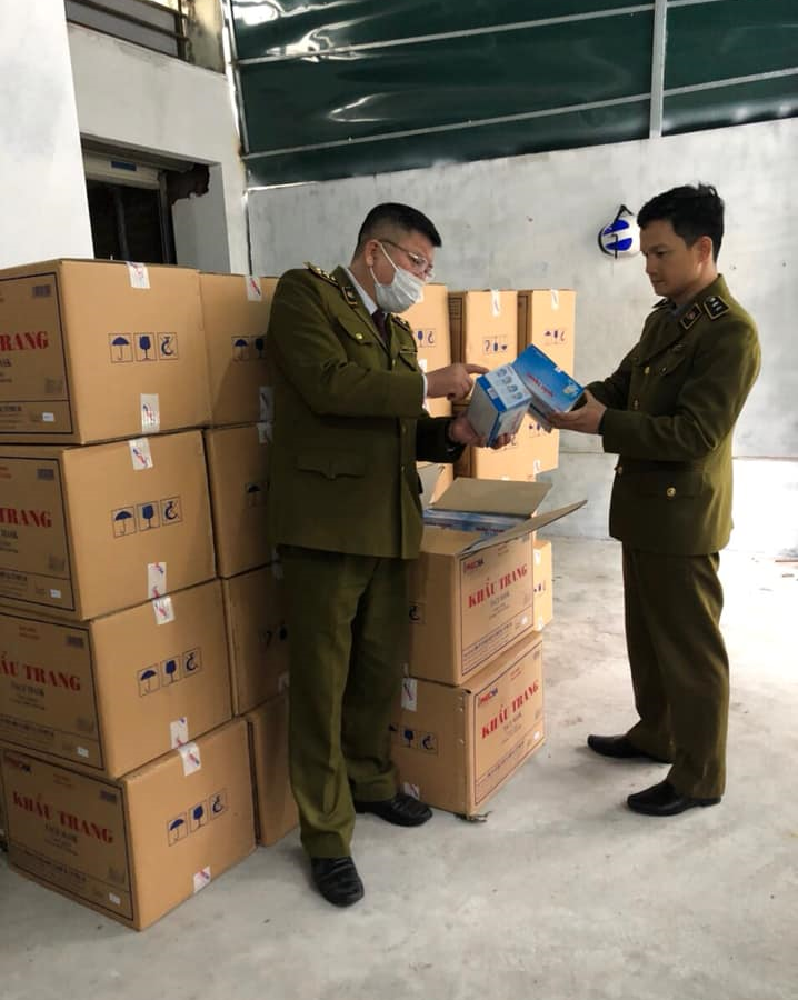Sáng 9/2, kiểm tra hành chính căn biệt thự liền kề tại dãy BT6 khu đô thị Văn Phú, quận Hà Đông, Tổ công tác Đội Quản lý thị trường (QLTT) số 6, Cục QLTT Hà Nội phát hiện 50 thùng carton chứa khẩu trang y tế được sản xuất trong nước.
