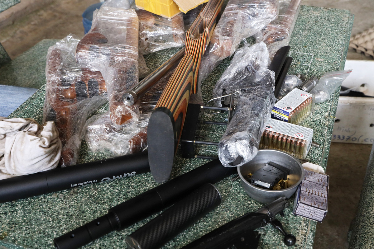 Công an thu giữ nhiều súng tự chế và đạn tại nhà Phạm Thanh Phong.