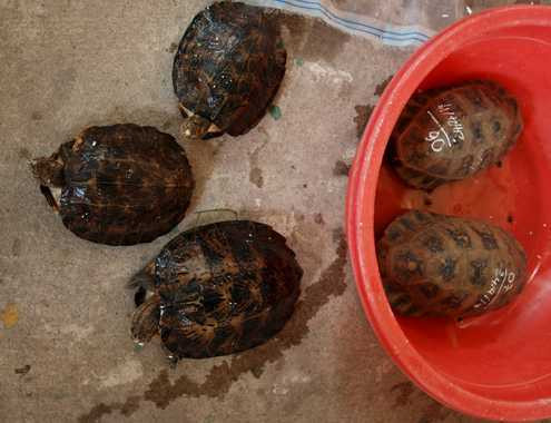 | Nhiều rùa quý hiếm cùng chuyến hàng rắn độc trên xe khách. Ảnh:Trí Tín. |