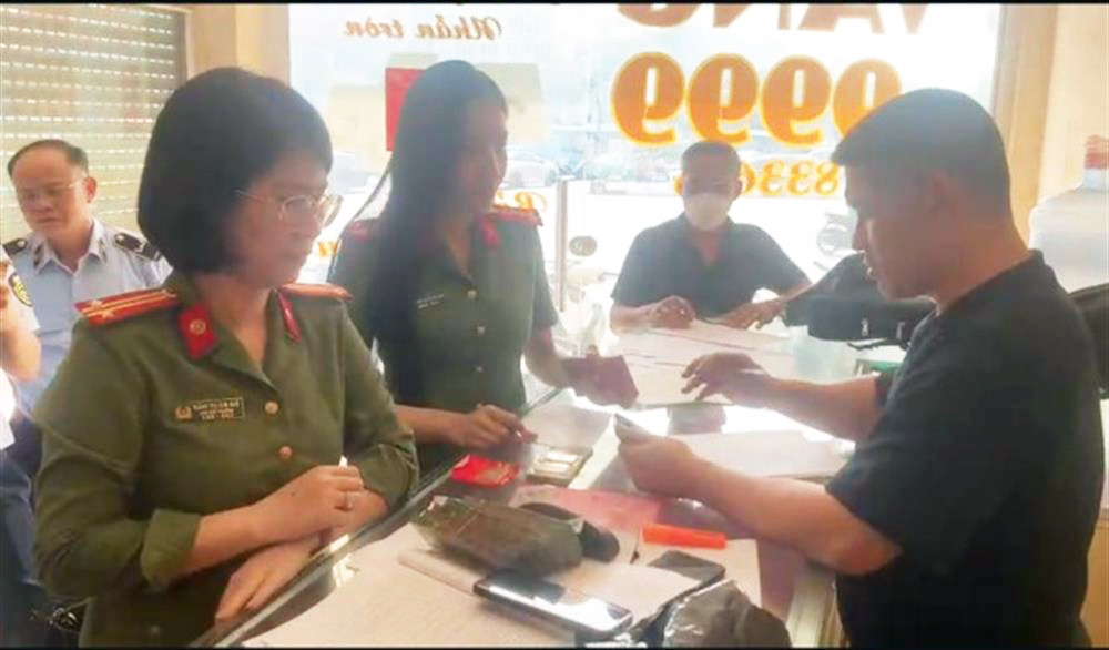 Kiểm tra tại cửa hàng B.T.T.H., cơ quan chức năng phát hiện, chồng bà T. đang mua 1 lượng vàng SJC từ một cá nhân với giá 81 triệu/lượng, thanh toán theo hình thức chuyển khoản, không có hoá đơn chứng từ.