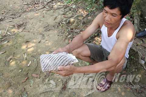 Anh Hồng cho biết, cách đây 2 năm, anh tìm thấy nó ở một con suối lớn, chảy qua xóm Chuối, thuộc xã Lâm Hóa. Đây là một khu vực tiếp giáp với rừng rậm, hoang vu. Thỉnh thoảng anh vẫn tìm lên khu vực đó để trồng cây, đặt bẫy thú rừng.