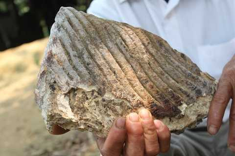 Tưởng là viên đá, ông mang về nhà lấy búa đinh đập một góc xem bên trong như thế nào. Khi đập ra, nhìn thấy rõ ràng đây là hàm răng hóa thạch của một con thú, ông đã dừng lại.
