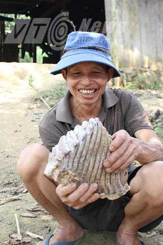 Thời gian trước, sau một trận lũ lớn, hai vợ chồng anh cứ đi theo con suối để đánh cá. Trong lúc đang giăng lưới, anh vướng phải một vật dưới suối, ngã nhào. Lúc đầu anh Hồng vẫn cứ tưởng đó là một cục đá, bởi chỉ có một cái mỏm nhọn hoắt chìa ra bên ngoài, nhưng đào được một lúc thì phát lộ ra cả một hàm răng lớn.