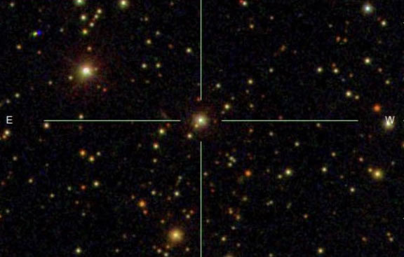 Điểm sáng ở trung tâm hình ảnh chính là cặp đôi Gaia DR3 4373465352415301632, nơi ngôi sao nhìn thấy được ẩn chứa một người bạn khổng lồ đang cố lôi kéo nó. (Ảnh: Sloan Digital Sky Survey/Chakrabart)Tuy nhiên, ông nói thêm rằng các lỗ đen dạng này rất khó quan sát. Bản thân của lỗ đen vốn đã khó nắm bắt vì chúng nuốt chửng mọi thứ ánh sáng có thể giúp chúng ta trông thấy. Tuy nhiên nếu may mắn, nhân loại thỉnh thoảng tìm ra một lỗ đen nhờ thứ ánh sáng từ luồng phản lực mà chúng nhả ra khi đang nuốt vật chất, hoặc qua tác động của nó lên vật thể khác.