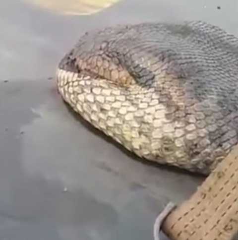 Con rắn dường như đã chết khi người ta quay lại clip, tuy nhiên, điều này không khiến những người chứng kiến bớt đi nỗi sợ hãi.