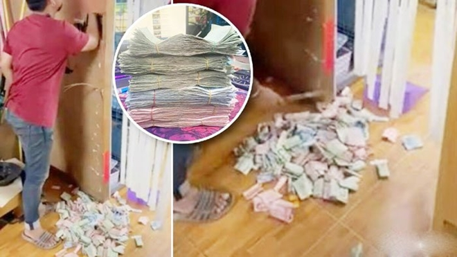 Giấu tiền vào tường gỗ, người đàn ông bị vợ phát hiện.