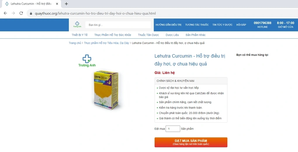 Ngày 8/12, Cục An toàn thực phẩm (Bộ Y tế) thông tin, thời gian vừa qua, tại đường link: https://quaythuoc.org/lehutra-curcumin-ho-tro-dieu-tri-day-hoi-o-chua-hieu-qua.html quảng cáo thực phẩm bảo vệ sức khỏe Lehutra-Curcumin với nội dung gây hiểu nhầm.