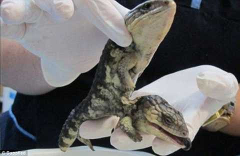 | thằn lằn 2 đầu này vừa ra đời trong một ca sinh 3 và chỉ có duy nhất chú có vẻ ngoài dị thường |