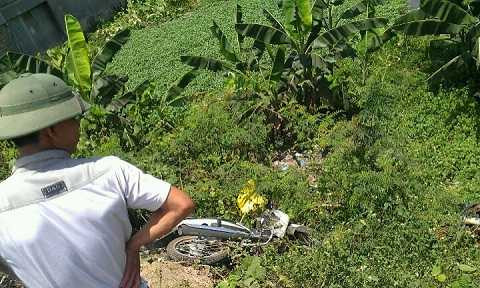 | Hiện trường nơi phát hiện thi thể nạn nhân và chiếc xe máy |