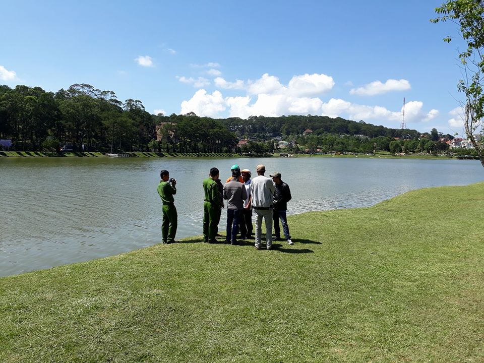 Lực lượng chức năng kiểm tra hiện trường tại hồ Xuân Hương. (ảnh: CT)