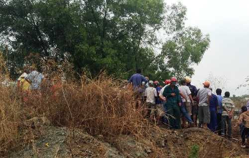 | Hiện trường người dân hiếu kỳ tìm đến khu vực hồ đá để xem xác chết |
