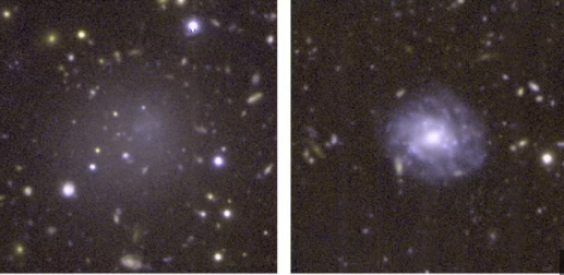 DGSAT I (trái) mờ hơn hẳn so với thiên hà bình thường (phải)