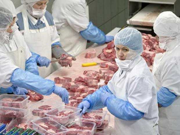 Dây chuyền sản xuất thịt ở Romania. Ảnh: AP