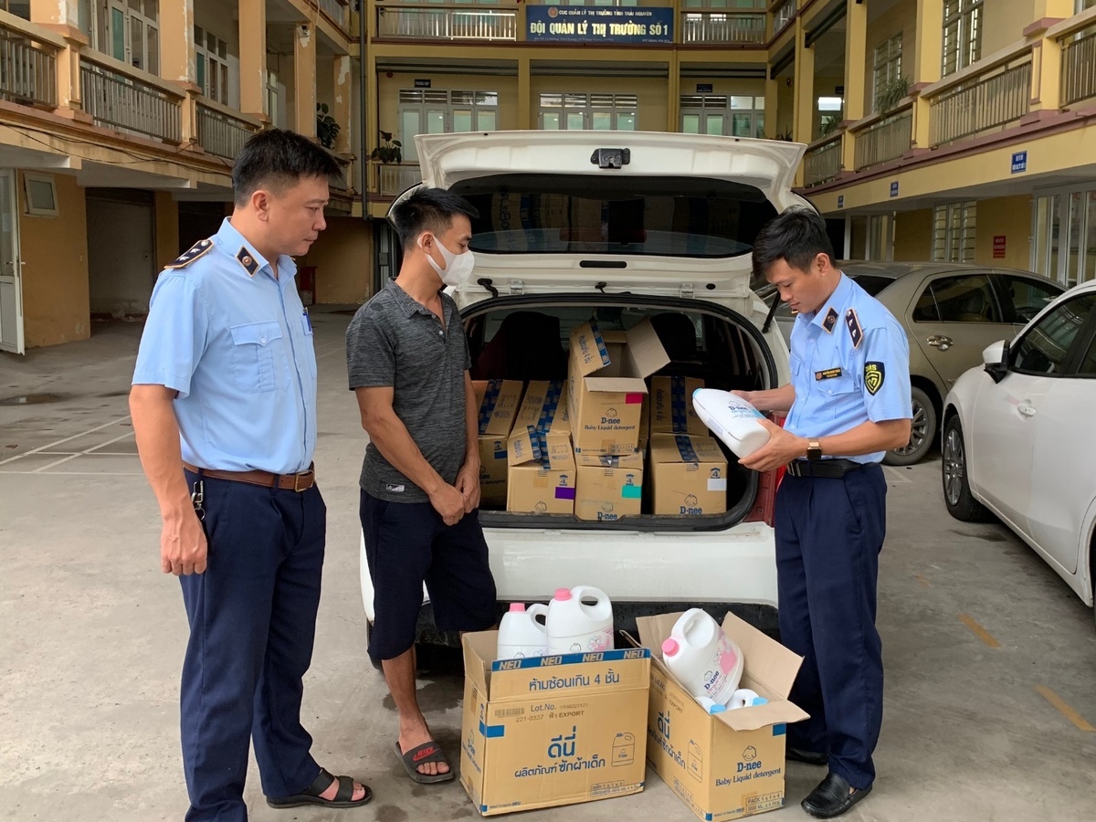 Qua khám phương tiện vận tải, đoàn kiểm tra phát hiện trên xe có 70 can nước giặt D-nee loại can 3000ml với tổng trị giá 13.300.000 đồng. Trên hàng hóa chỉ có nhãn gốc bằng tiếng nước ngoài, không có nhãn phụ bằng tiếng Việt. Trên nhãn gốc có dòng chữ bằng tiếng Anh: "Product of Thailand" thể hiện toàn bộ số hàng hóa này có xuất xứ tại Thái Lan, là hàng hóa nhập lậu.