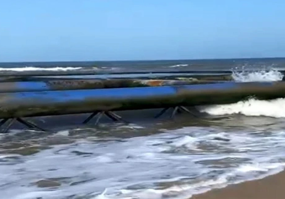 Vật thể lạ khổng lồ làm bằng kim loại trôi dạt vào vùng bờ biển huyện Phong Điền (Thừa Thiên - Huế). (Ảnh: CTV)