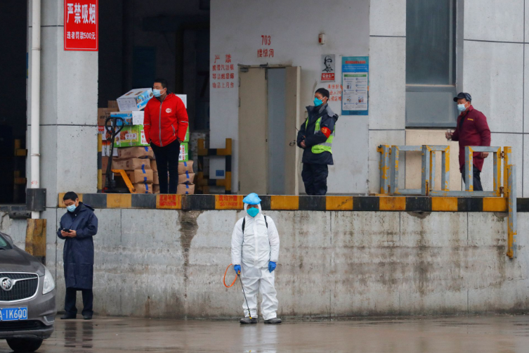 Một người mặc đồ bảo hộ đứng ở chợ Baishazhou trong chuyến thăm của nhóm Tổ chức Y tế Thế giới (WHO) được giao nhiệm vụ điều tra nguồn gốc COVID-19, cuối tháng 1/2021. (Ảnh: Reuters)