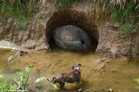 Chiếc vỏ dài khoảng 1m, có hình cầu được phát hiện trên đoạn sông gần trang trại nơi anh Nievas sống.