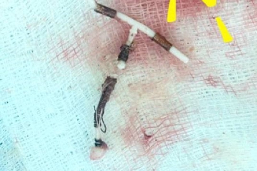 Ca phẫu thuật cắt ruột thừa nội soi được tiến hành. Tuy nhiên, một tình huống bất ngờ đã xảy ra. Cụ thể, khi cắt bỏ ruột thừa viêm, các bác sĩ phát hiện một dị vật lạ được mạc nối lớn bao bọc chặt chẽ. Sau khi cẩn thận bóc tách, dị vật được xác định là một chiếc vòng tránh thai loại TCU đã bị gãy làm đôi, cong gập phần cành.