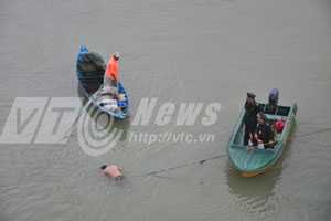 | Xác chết đang được cơ quan chức năng vớt vào bờ |