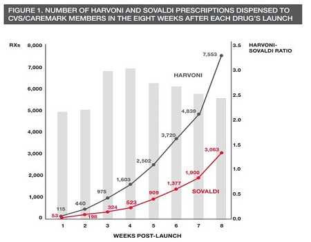 Theo báo cáo của CVS Health, chỉ 8 tuần sau khi được tung ra thị trường, thuốc Harvoni đã được tiêu thụ nhiều gấp 2,5 lần so với Sovaldi tại cùng thời điểm Sovaldi được bán ra.