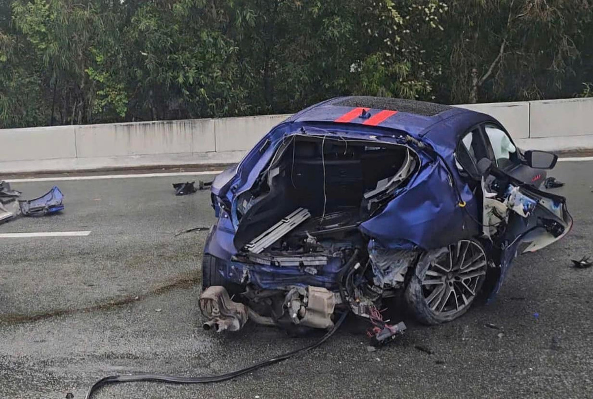 Chiếc xe sang bị vò nát sau vụ tai nạn trên đường Mai Chí Thọ, TP Thủ Đức, TP.HCM.