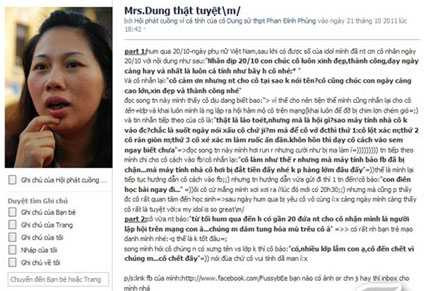 Có một điều khá thú vị là trên fanpage này, các teen còn có những viết và đăng về những “điển tích” và “ những câu nói bất hủ” của cô. Bất kỳ một ai đọc được những note này đều cảm nhận được rằng cô Dung là một giáo viên rất có cá tính.
